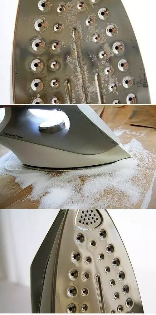 熨斗底部用时间长了,就会形成一层黏黏的东西。只要把熨斗加热后,按在食盐上烫一下,反复做几次就能把熨斗清洁干净。